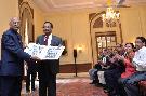 Shri Subhash Kankheria with his son Shri Tarun Kankheria meeting with the President of India, Shri Ram Nath Kovind, at Rashtrapati Bhavan on October 26, 2017.