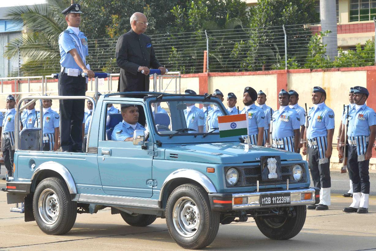 The President of India, Shri Ram Nath Kovind inspecting the Guard of Honour, on his Arrival, at the Bengaluru Airport on October 24, 2017.