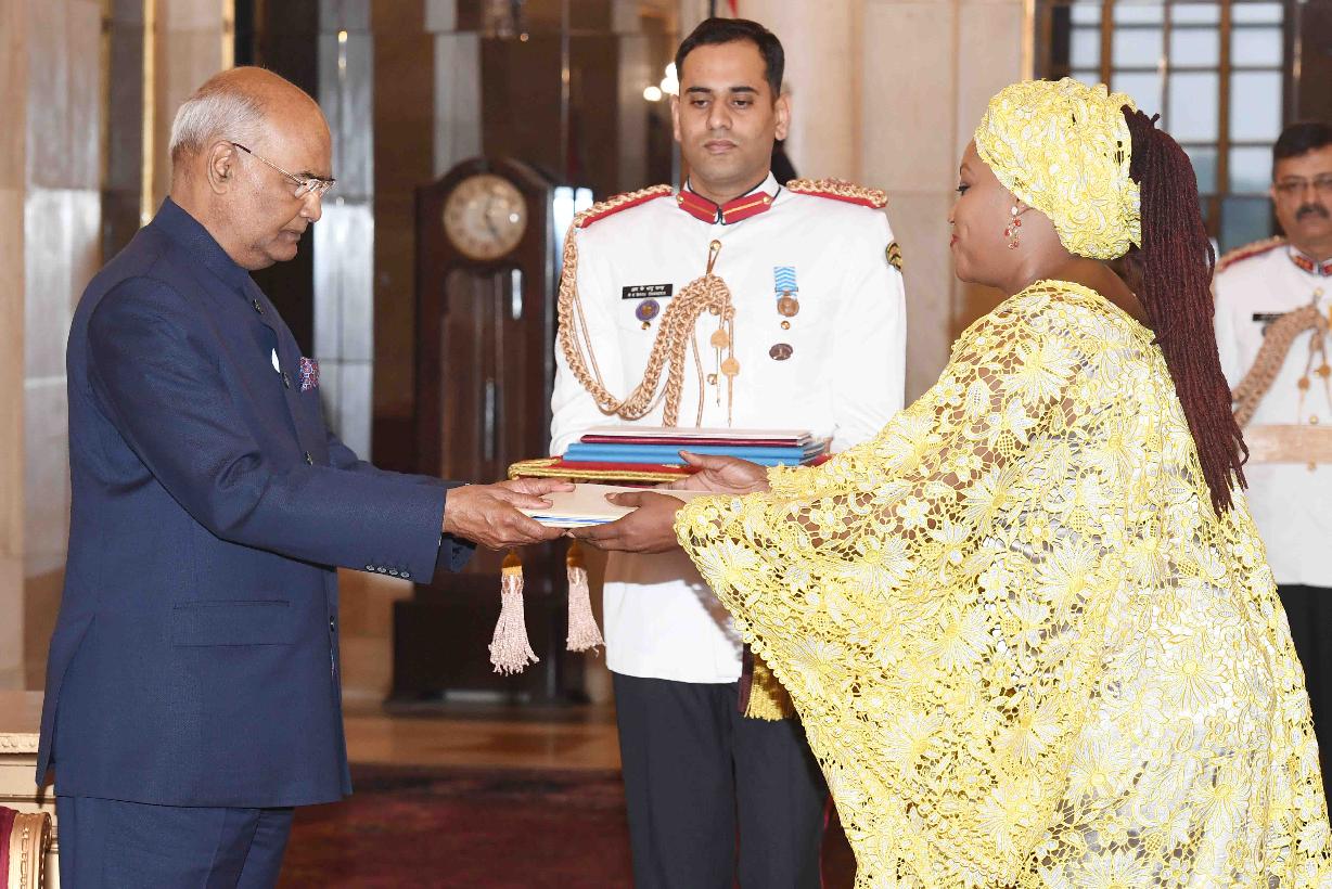 The Ambassador-designate of Gambia, HE Ms. Jainaba Jagne presenting her credentials to the President of India, Shri Ram Nath Kovind, at Rashtrapati Bhavan on October 26, 2017.