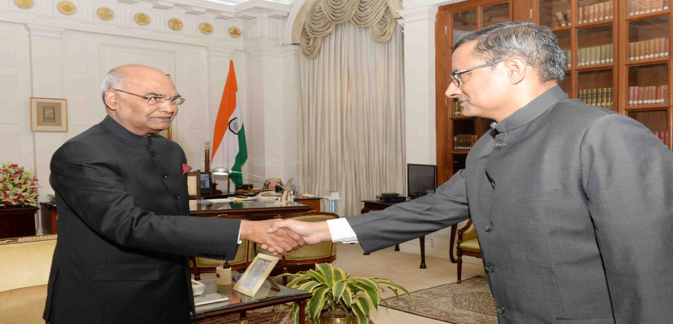 The Defence Secretary, Shri Sanjay Mitra calling on the President of India, Shri Ram Nath Kovind, at Rashtrapati Bhavan on October 16, 2017.