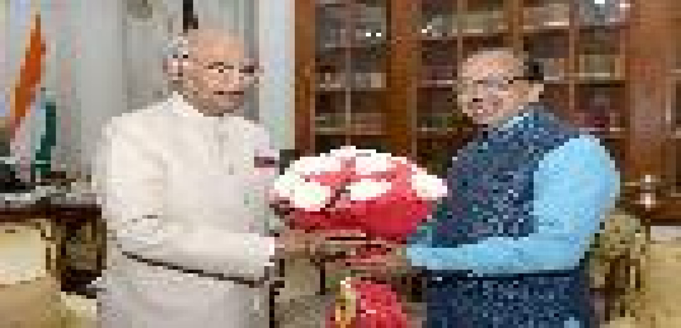 The Governor of Assam, Prof. Jagdish Mukhi greeting the President of India, Shri Ram Nath Kovind, on the occasion of Diwali, at Rashtrapati Bhavan on October 19, 2017.