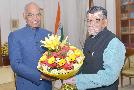 The Minister of State for Parliamentary Affairs and Statistics & Programme Implementation, Shri Vijay Goel greeting the President of India, Shri Ram Nath Kovind, on the occasion of Diwali, at Rashtrapati Bhavan on October 19, 2017.