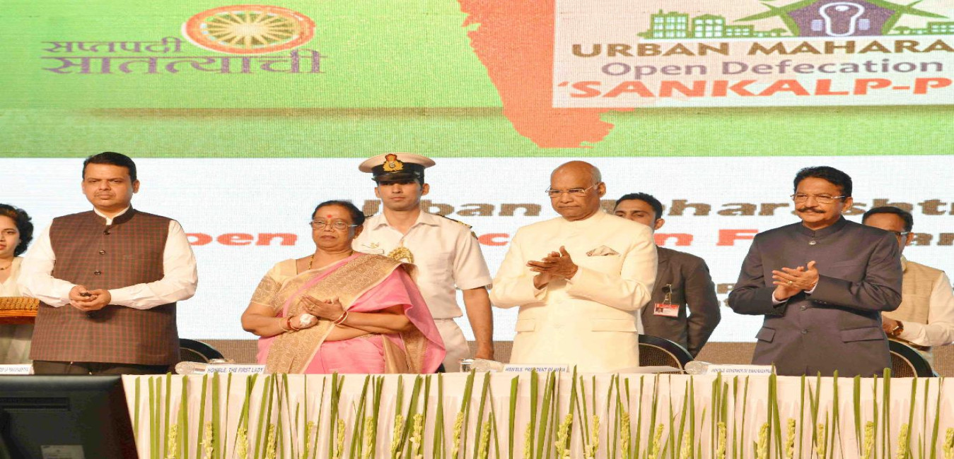 The President of India, Shri Ram Nath Kovind gracing the function organised to declare Open Defecation Free (ODF) of urban Maharashtra and felicitating the Stake holders of Swachh Maharashtra, at Mumbai, in Maharashtra on October 01, 2017.
