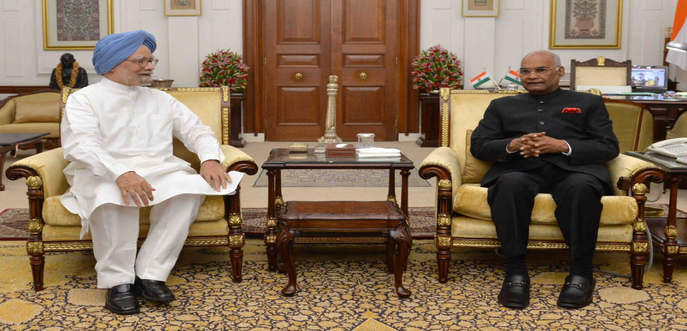 The former Prime Minister of India, Dr. Manmohan Singh greeting the President of India, Shri Ram Nath Kovind, on his birthday, at Rashtrapati Bhavan on October 01, 2017.