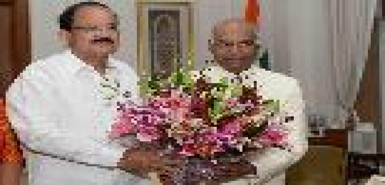 The Vice President of India, Shri M. Venkaiah Naidu greeting the President of India, Shri Ram Nath Kovind, on his birthday, at Rashtrapati Bhavan on October 01, 2017.