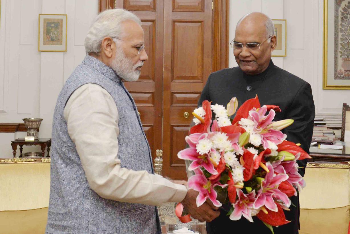 The Prime Minister of India, Shri Narendra Modi greeting the President of India, Shri Ram Nath Kovind, on his birthday, at Rashtrapati Bhavan on October 01, 2017.