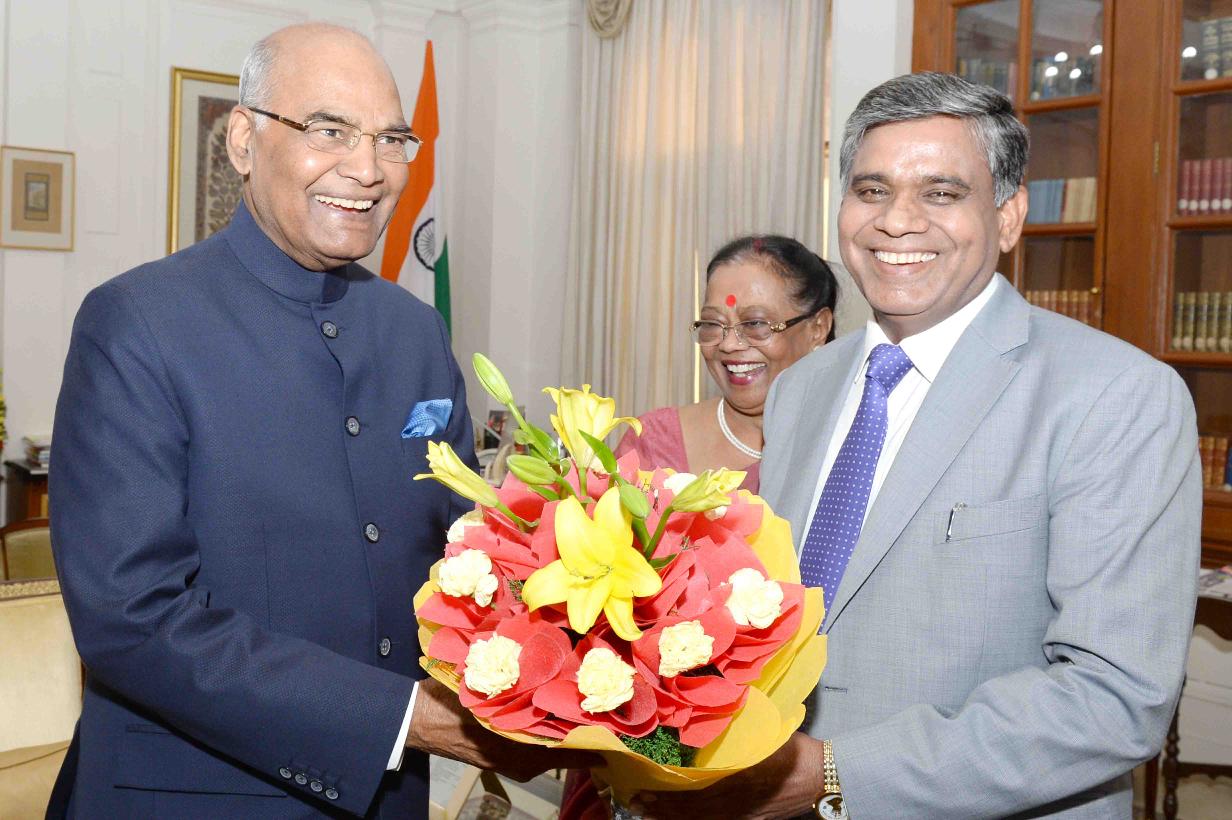 The Comptroller & Auditor General of India, Shri Rajiv Mehrishi meeting with the President of India, Shri Ram Nath Kovind, at Rashtrapati Bhavan on September 27, 2017.
