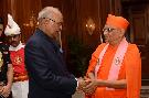 Shri Purushottampriyadasji Maharaj, Gaddipati, Shree Swaminarayan Temple Sevashram, Maninagar, Ahmedabad with others meeting with the President of India, Shri Ram Nath Kovind, at Rashtrapati Bhavan on September 27, 2017.