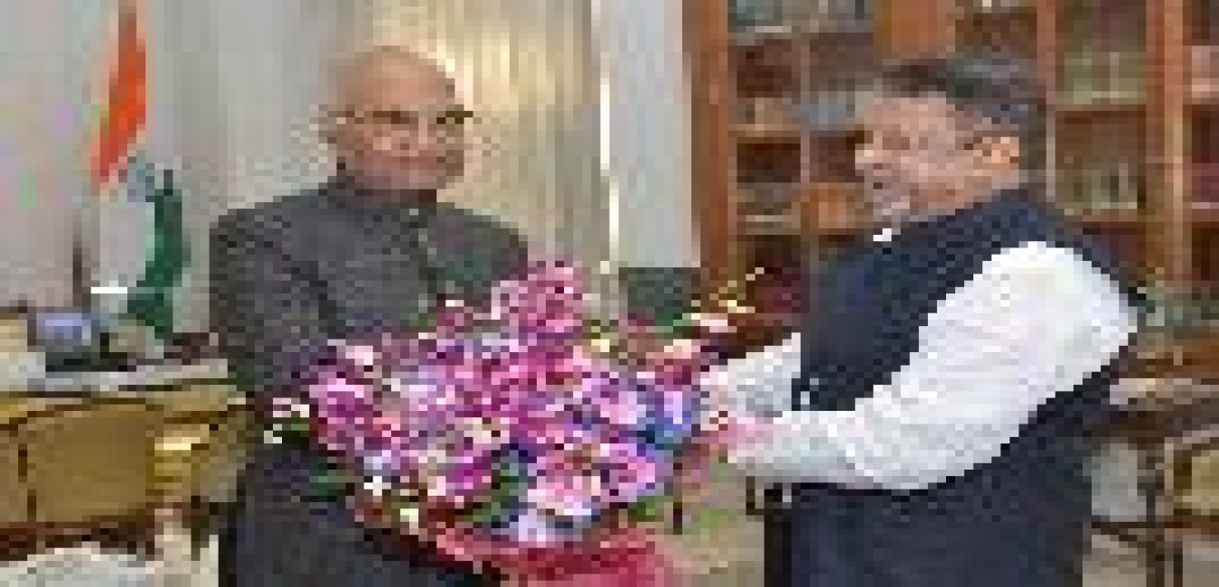 Dr. Vikas Mahatme, MP (RS) meeting with the President of India, Shri Ram Nath Kovind, at Rashtrapati Bhavan on September 13, 2017.