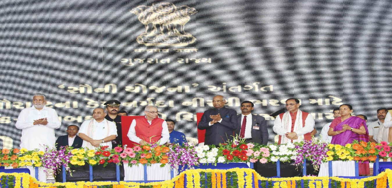 The President of India, Shri Ram Nath Kovind at the Foundation Stone laying ceremony of Saurashtra Narmada Avataran Irrigation Yojana (SAUNI) Phase-II Link-4, at Rajkot, in Gujarat on September 04, 2017.