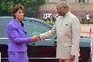 The President of India, Shri Ram Nath Kovind receiving the President of the Swiss Confederation, H.E. Mrs. Doris Leuthard during her Ceremonial Reception, at Forecourt, in Rashtrapati Bhavan on August 31, 2017.