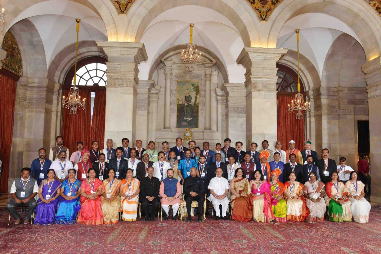 The President of India, Shri Ram Nath Kovind meeting the awardee teachers on the occasion of Teacher's Day, at Rashtrapati Bhavan on September 05, 2017.