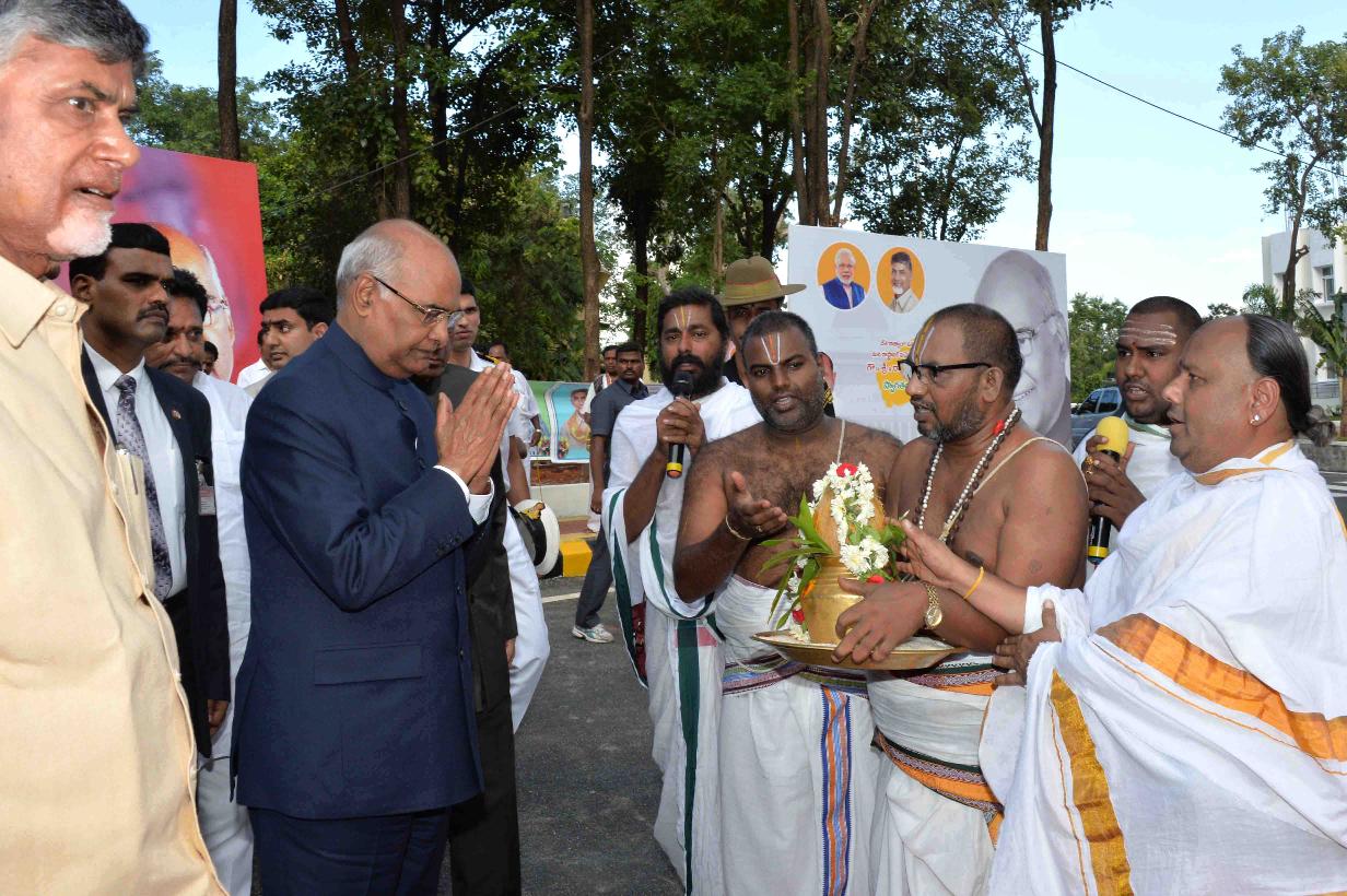 The President of India, Shri Ram Nath Kovind visiting Srivari Temple, Isthikapal Honours, at Mahadwaram, in Andhra Pradesh on September 02, 2017.