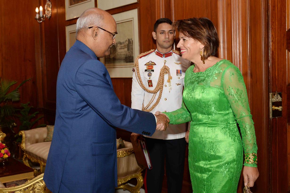 The President of the Swiss Confederation, H.E. Mrs. Doris Leuthard calling on the President of India, Shri Ram Nath Kovind, at Rashtrapati Bhavan on August 31, 2017.