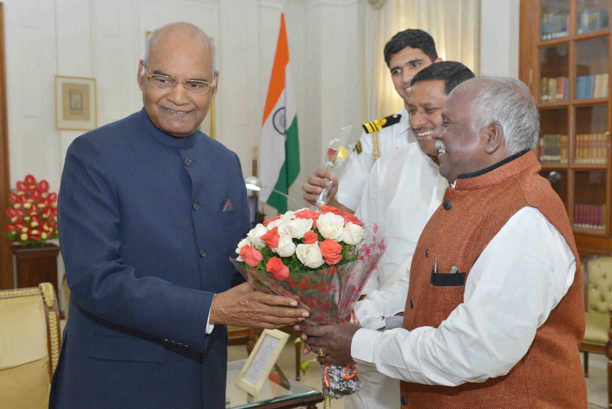 Shri Govind Ram Miri, Ex-MP (RS) meeting with the President of India, Shri Ram Nath Kovind, at Rashtrapati Bhavan on August 30, 2017.