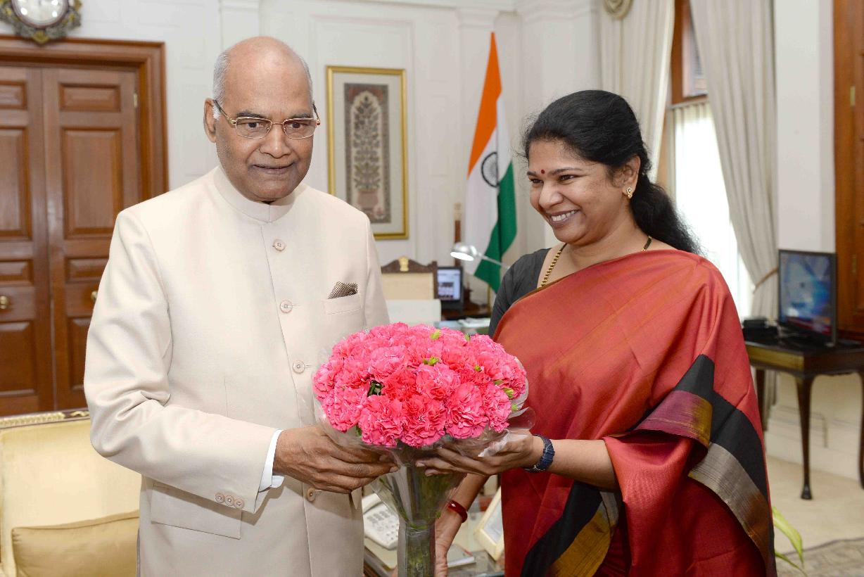 Ms. Kanimozhi, MP (RS) & Leader, DMK Parliamentary Party alongwith a delegation of Members of Parliament from DMK, Congress, CPI & CPI (M) meeting with the President of India, Shri Ram Nath Kovind, at Rashtrapati Bhavan on August 31, 2017.