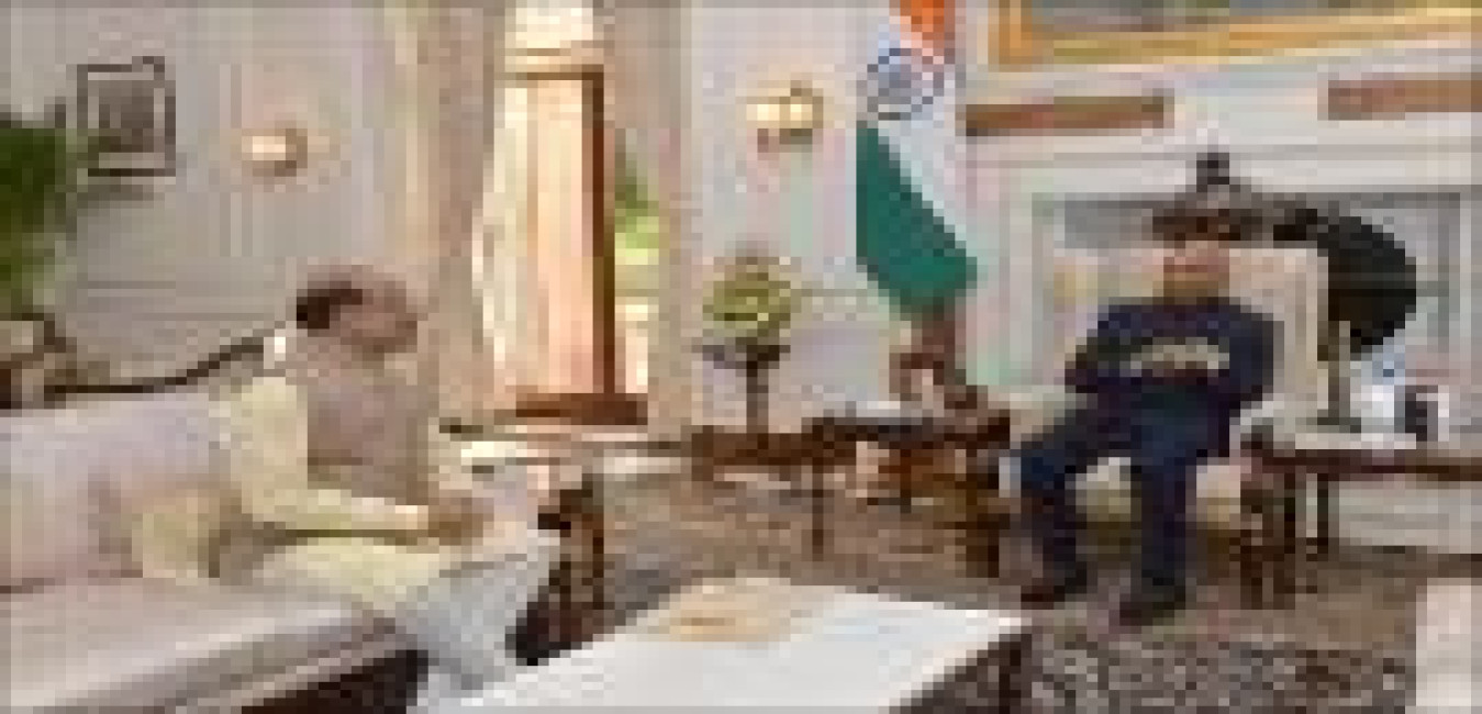 The Lt. Governor of UT of Ladakh, Shri R.K. Mathur calling on the President of India, Shri Ram Nath Kovind, at Rashtrapati Bhavan on July 02, 2022.