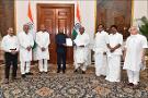 A delegation of the Indian National Congress leaders comprising Shri Mallikarjun Kharge, Shri Ashok Gehlot, Shri Bhupesh Baghel, Shri Adhir Ranjan Chowdhury, Shri P. Chidambaram, Shri Jairam Ramesh and Shri K.C. Venugopal calling on the President of India, Shri Ram Nath Kovind, at Rashtrapati Bhavan on June 20, 2022.