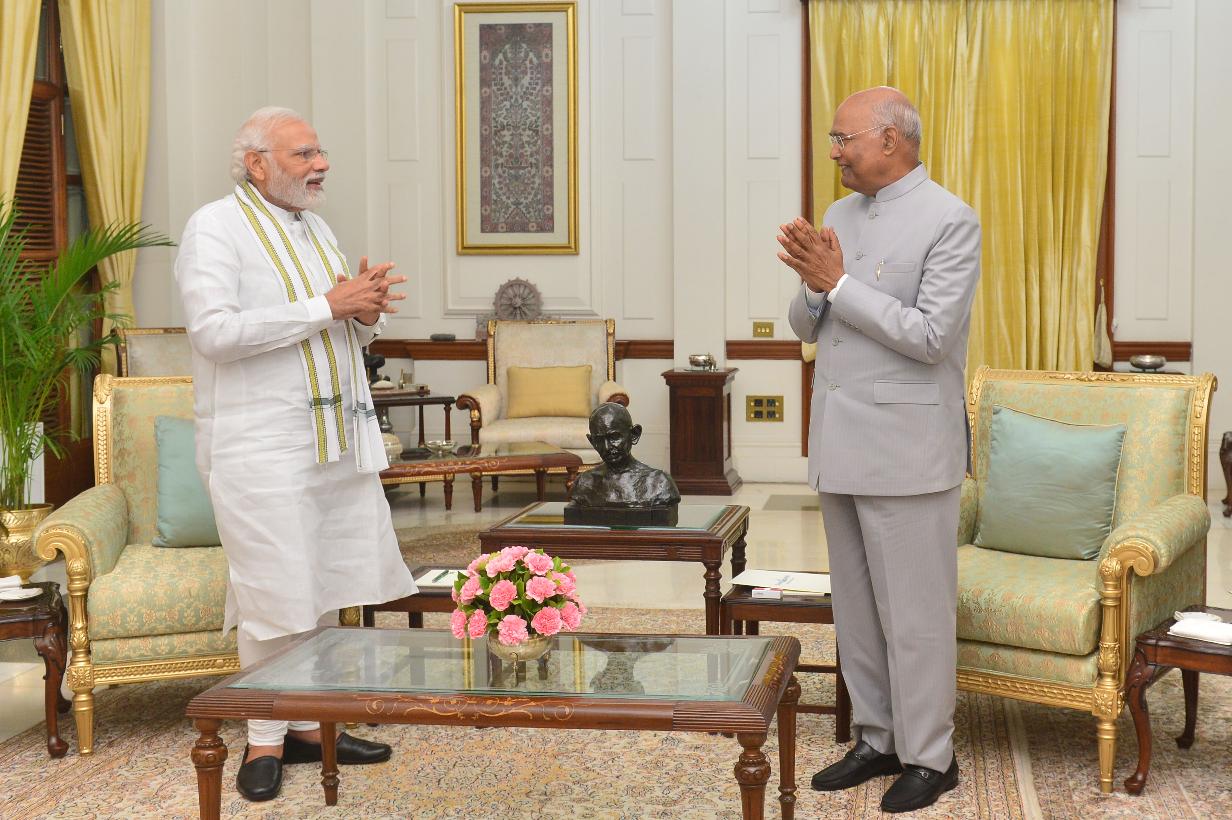 The Prime Minister of India, Shri Narendra Modi calling on the President of India, Shri Ram Nath Kovind, at Rashtrapati Bhavan on June 19, 2022.