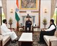 The Governor of Rajasthan, Shri Kalraj Mishra calling on the President of India, Shri Ram Nath Kovind, at Rashtrapati Bhavan on June 22, 2022.