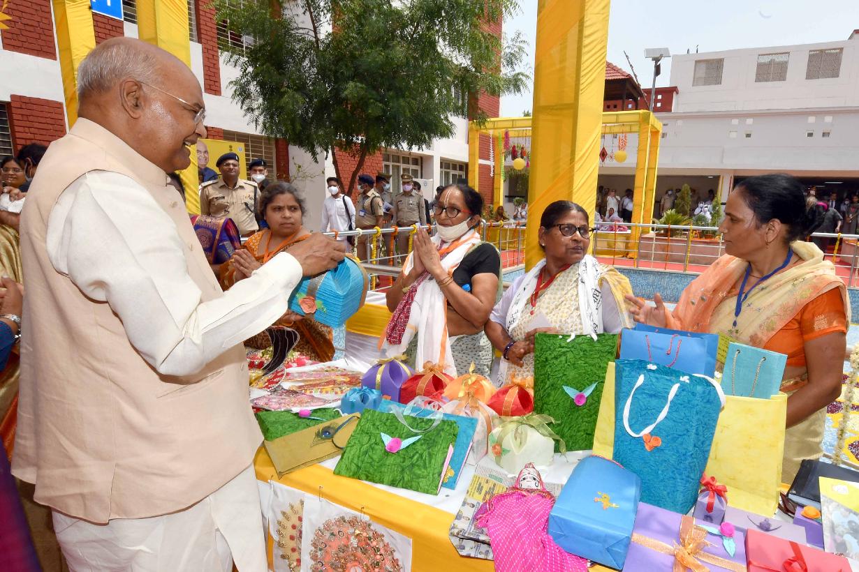 The President of India, Shri Ram Nath Kovind visited Krishna Kutir and interacted with the inmates, at Vrindavan, in Uttar Pradesh on June 27, 2022.