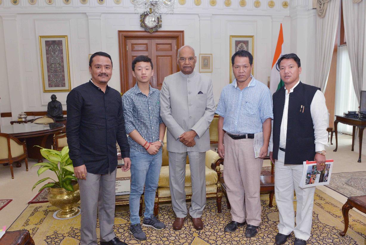 Shri Ojingso Pul, son of late Shri Kalikho Pul, former Chief Minister of Aruncahal Pradesh with others meeting with the President of India, Shri Ram Nath Kovind, at Rashtrapati Bhavan on August 26, 2017.