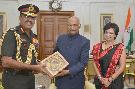 Lt. Gen. R.J. Noronha, OC HQ Southern Command, Pune alongwith his wife Smt. Shalini Noronha meeting with the President of India, Shri Ram Nath Kovind, at Rashtrapati Bhavan on August 28, 2017.