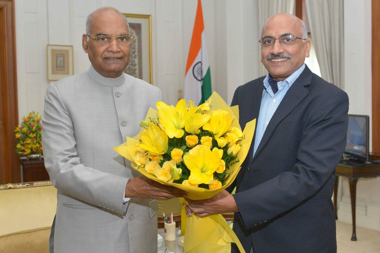 Air Marshal (Retd.) R.C. Bajpai meeting with the President of India, Shri Ram Nath Kovind, at Rashtrapati Bhavan on August 28, 2017.