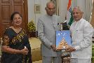The Minister of Road Transport and Highways and Shipping, Shri Nitin Jairam Gadkari alongwith Ms. Sulekha Kumbhare and Shri Girish Gandhi meeting with the President of India, Shri Ram Nath Kovind, at Rashtrapati Bhavan on August 28, 2017.