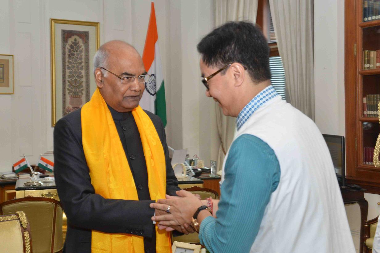 The Minister of State for Home Affairs, Shri Kiren Rijiju meeting with the President of India, Shri Ram Nath Kovind, at Rashtrapati Bhavan on August 19, 2017.