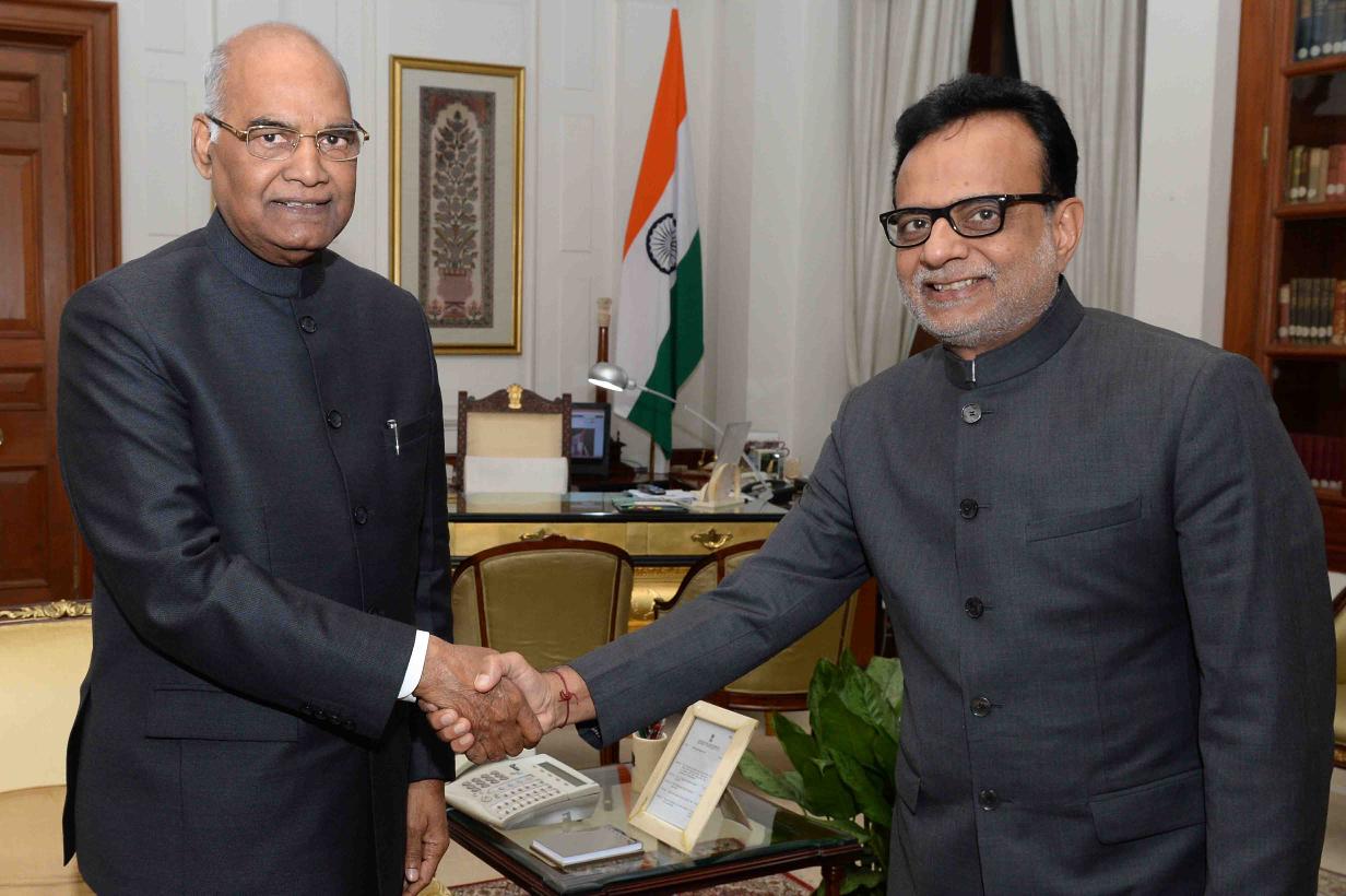 The Revenue Secretary, Shri Hashmukh Adhia meeting with the President of India, Shri Ram Nath Kovind, at Rashtrapati Bhavan on August 19, 2017.