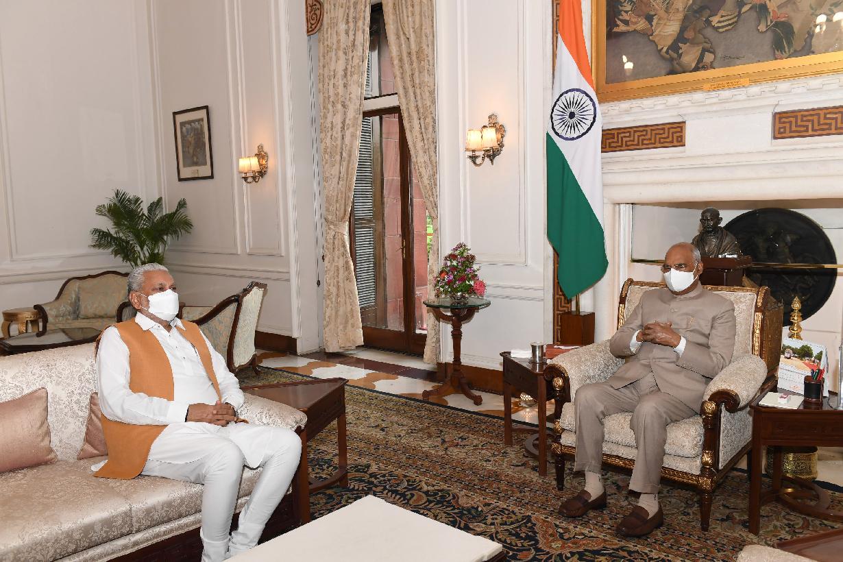 The Governor of Jharkhand, Shri Ramesh Bais calling on the President of India, Shri Ram Nath Kovind, at Rashtrapati Bhavan on July 20, 2021.