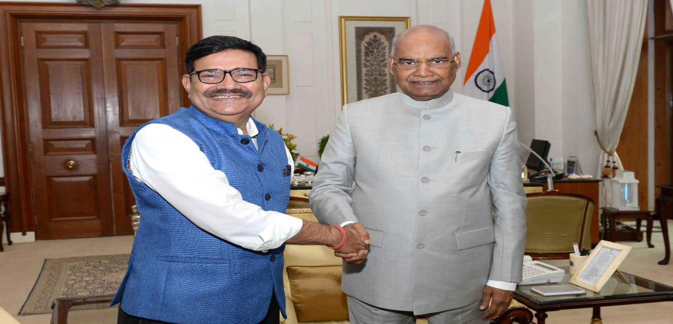Shri Om Prakash Mathur, MP (RS) meeting with the President of India, Shri Ram Nath Kovind, at Rashtrapati Bhavan on August 03, 2017.