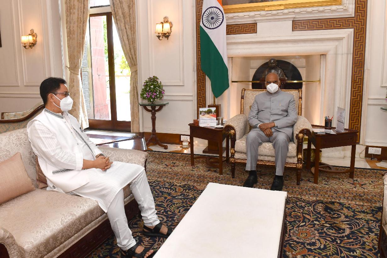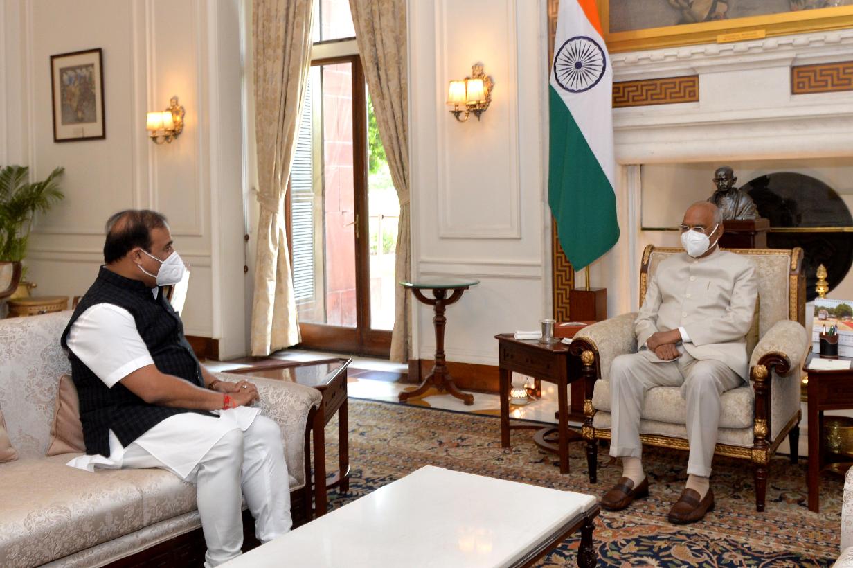 The Chief Minister of Assam, Dr. Himanta Biswa Sarma calling on the President of India, Shri Ram Nath Kovind, at Rashtrapati Bhavan on July 02, 2021.