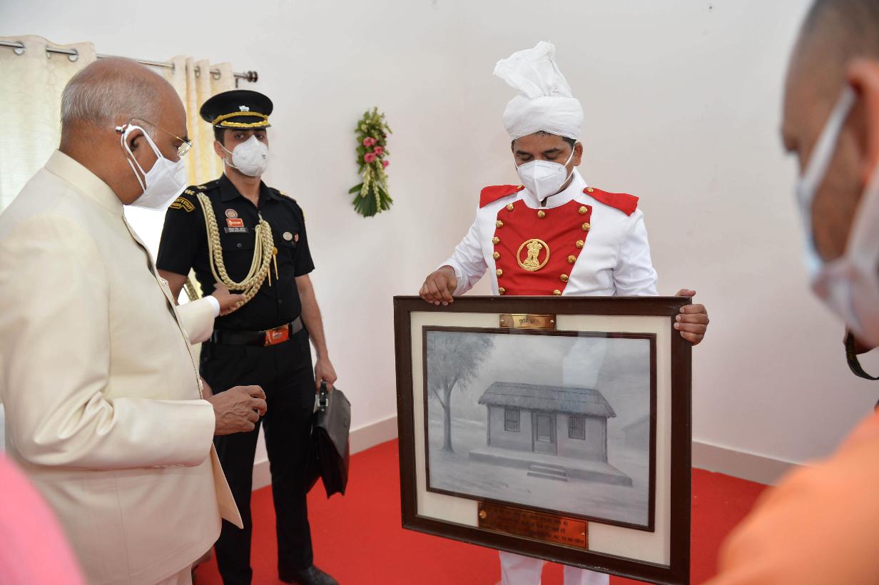 The President of India, Shri Ram Nath Kovind visited his ancestral house that is now donated for public use and converted in a community centre (Milan Kendra), at Paraunkh, in Kanpur Dehat on June 27, 2021.