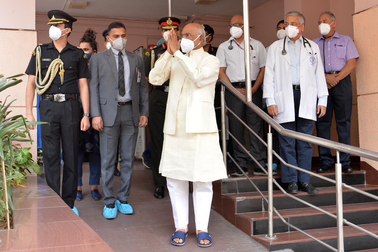 The President of India, Shri Ram Nath Kovind after being discharged from All India Institute of Medical Sciences (AIIMS), New Delhi on April 12, 2021.