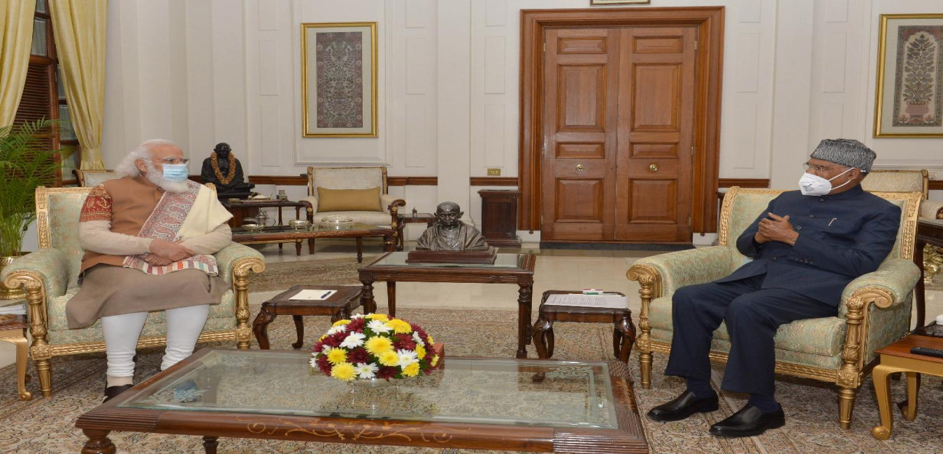 The Prime Minister of India, Shri Narendra Modi calling on the President of India, Shri Ram Nath Kovind, at Rashtrapati Bhavan on December 30, 2020.