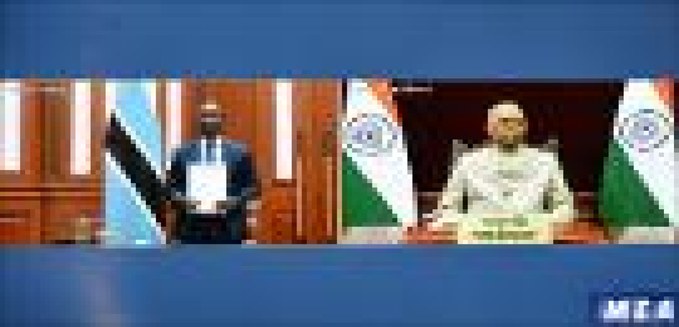 The President of India, Shri Ram Nath Kovind receives credentials from H.E. Mr. Gilbert Shimane Mangole, High Commissioner-designate of Botswana to India, through video conferencing, at Rashtrapati Bhavan on October 14, 2020.