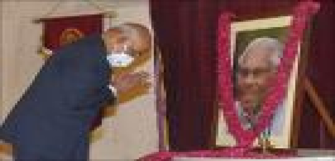 The President of India, Shri Ram Nath Kovind paying floral tributes to Shri K.R. Narayanan, former President of India on his birth anniversary, at Rashtrapati Bhavan on October 27, 2020.