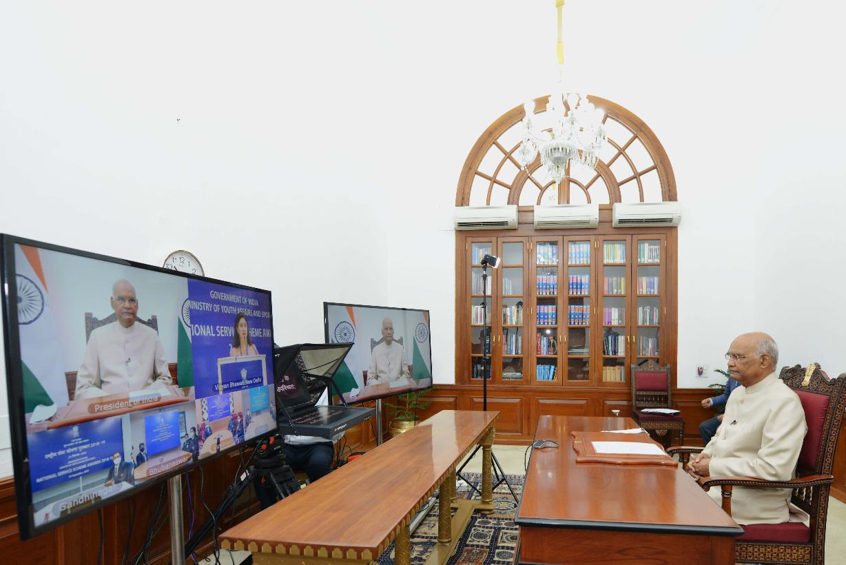 The President of India, Shri Ram Nath Kovind presented the National Service Scheme (NSS) Awards for 2018-2019 via video conferencing, at Rashtrapati Bhavan on September 24, 2020.
