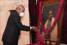 The President of India, Shri Ram Nath Kovind paying floral tributes to Dr. APJ Abdul Kalam, former President of India, on his birth anniversary, at Rashtrapati Bhavan on October 15, 2020.