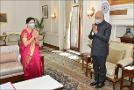 The Secretary (East), Ministry of External Affairs, Smt. Vijay Thakur Singh meeting with the President of India, Shri Ram Nath Kovind, at Rashtrapati Bhavan on September 25, 2020.