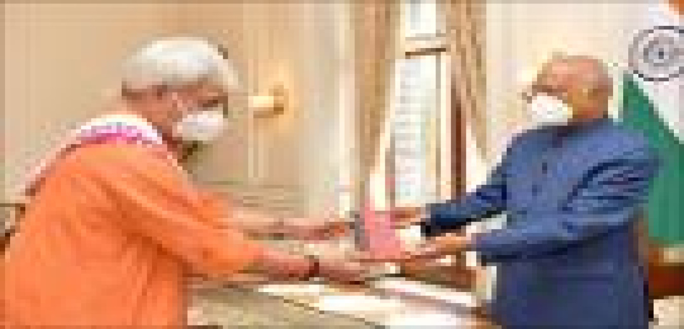 The Lt. Governor of Jammu and Kashmir, Shri Manoj Sinha calling on the President of India, Shri Ram Nath Kovind, at Rashtrapati Bhavan on August 10, 2020.