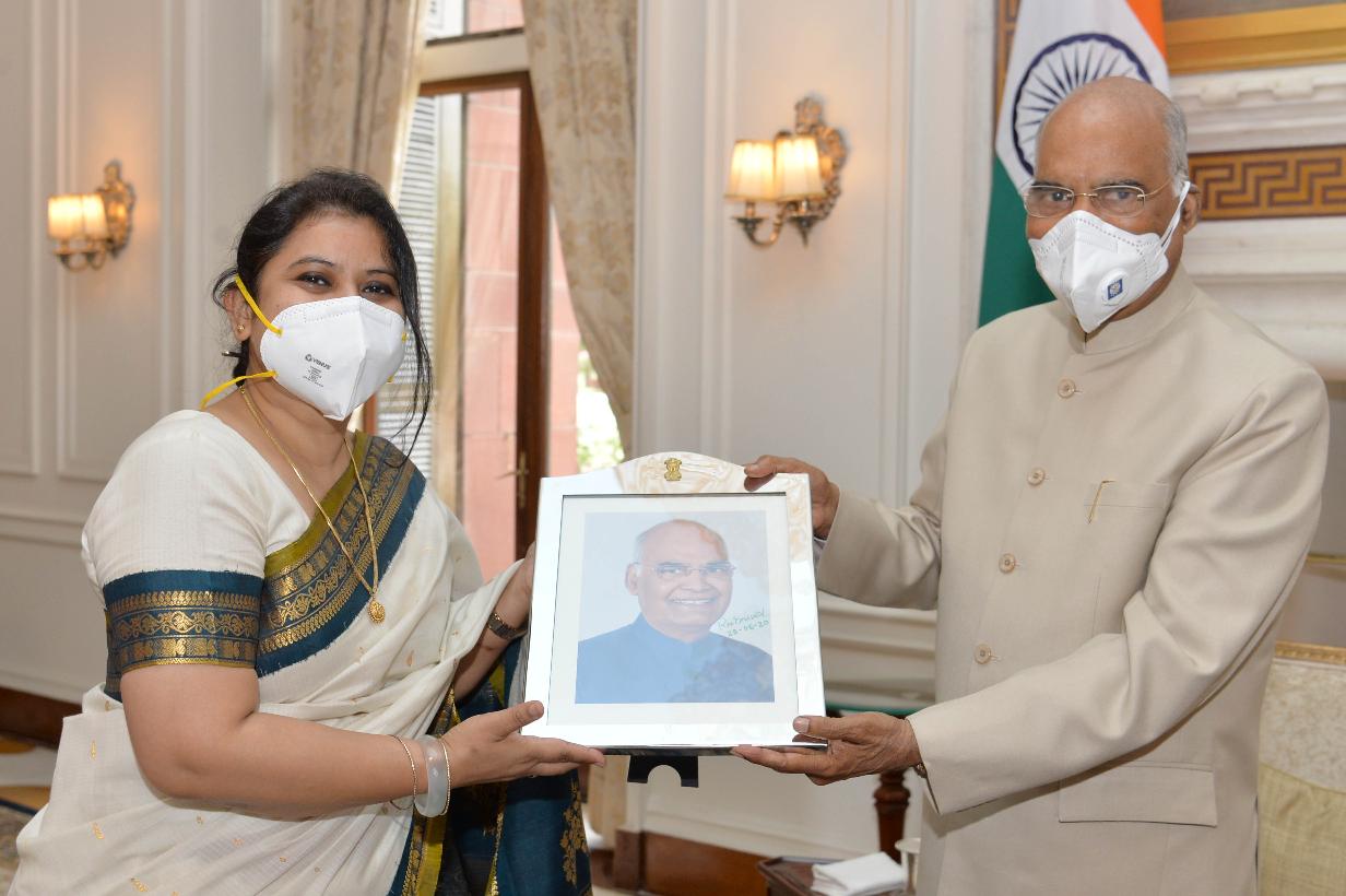 The Ambassador-designate of India to Slovenia, Smt. Namrata Kumar calling on the President of India, Shri Ram Nath Kovind, at Rashtrapati Bhavan on June 29, 2020.