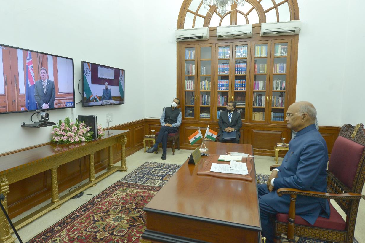 The President of India, Shri Ram Nath Kovind accepted credentials from Ambassadors and High Commissioners of Democratic People's Republic of Korea, Senegal, Trinidad & Tobago, Mauritius, Australia, Cote d'Ivoire and Rwanda through video conference on May 21, 2020.