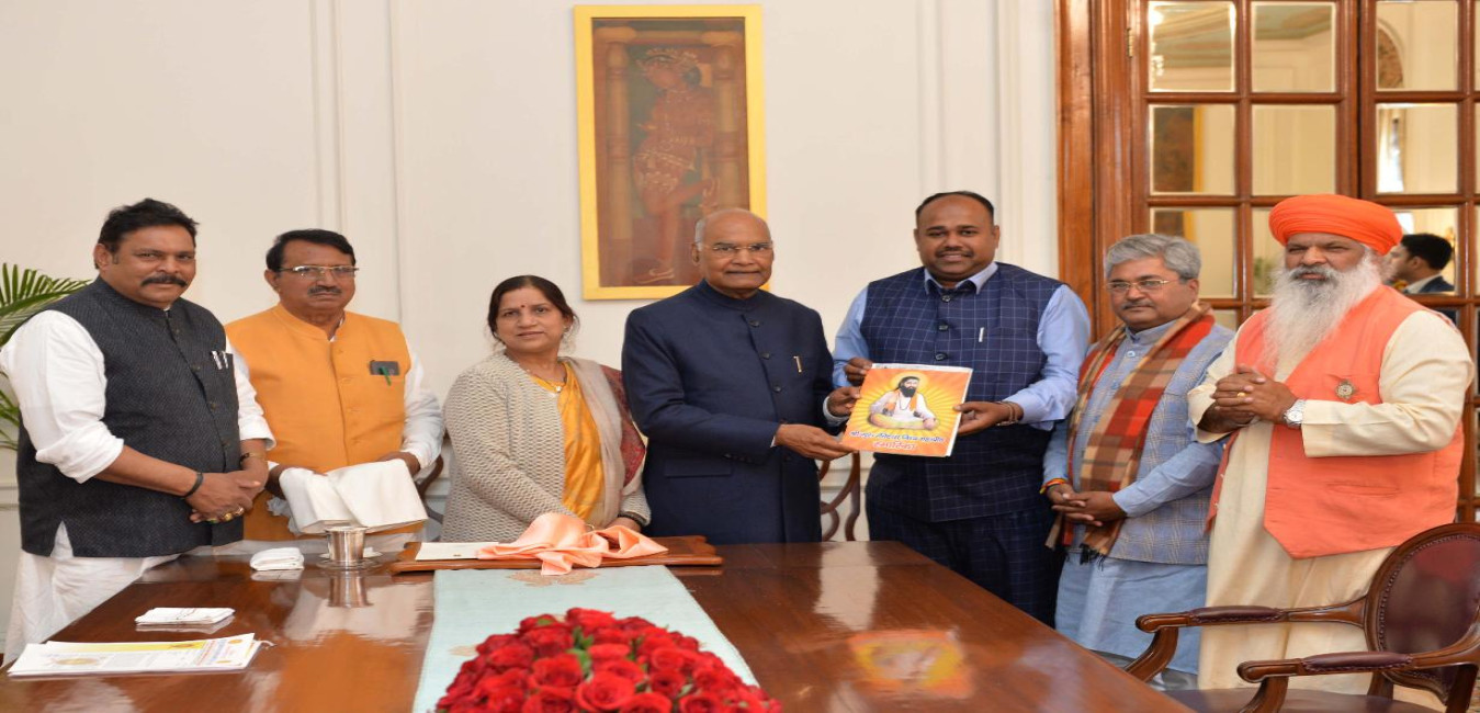 Shri Atmaram Parmar, Ex. Speaker, Gujarat Legislative Assembly & Antarrashtriya Mahamantri along with office bearers from Shri Guru Ravidas Vishwa Mahapeeth meeting with the President of India, Shri Ram Nath Kovind, at Rashtrapati Bhavan on February 19, 2020.