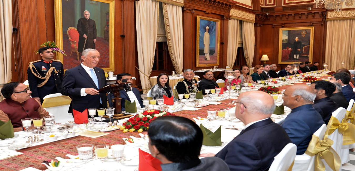 The President of India, Shri Ram Nath Kovind hosting a banquet in honour of the President of the Portuguese Republic, H.E. Mr. Marcelo Rebelo de Sousa, at Rashtrapati Bhavan on February 14, 2020.