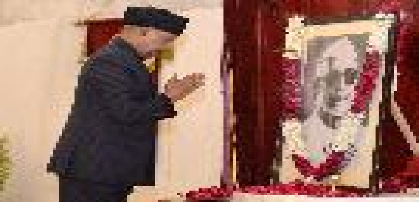 The President of India, Shri Ram Nath Kovind paying floral tributes to Dr. Zakir Hussain, former President of India on his birth anniversary, at Rashtrapati Bhavan on February 08, 2020.