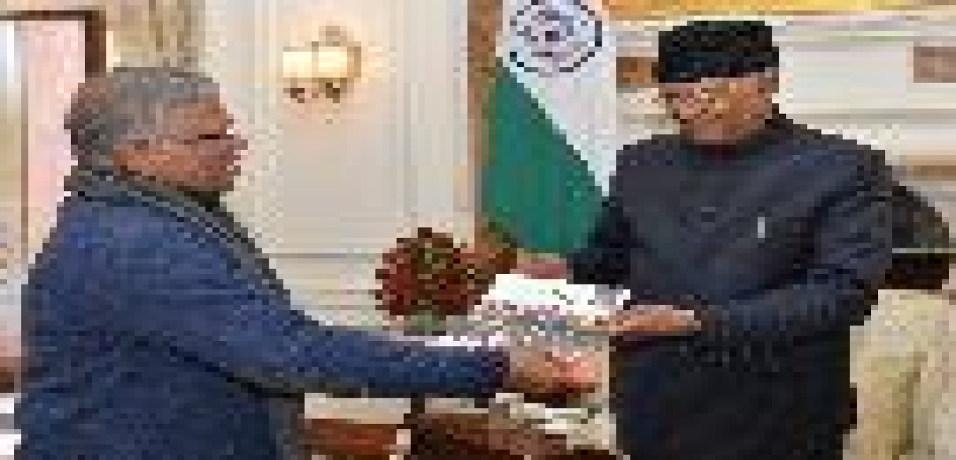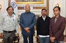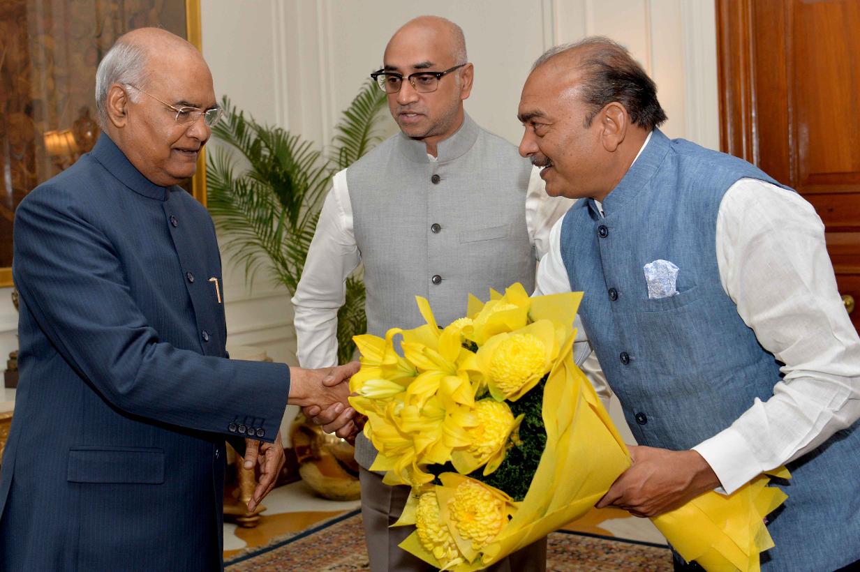 The Minister of Social Justice and Empowerment, Shri Thaawarchand Gehlot along with Shri Chetanya Kasyap, MLA meeting with the President of India, Shri Ram Nath Kovind, at Rashtrapati Bhavan on February 10, 2020.
