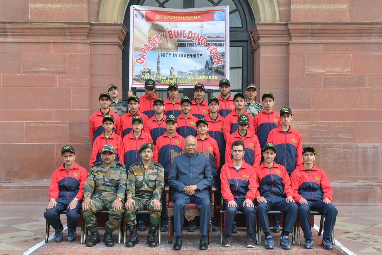 Students from the Union Territory of Jammu and Kashmir attending Capacity Building Tour (CBT), organised by 3 RR meeting with the President of India, Shri Ram Nath Kovind, at Rashtrapati Bhavan on February 07, 2020.